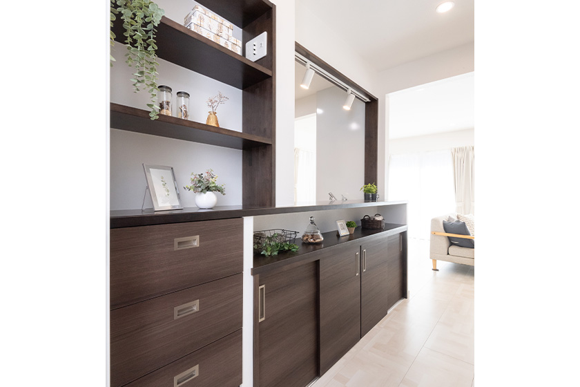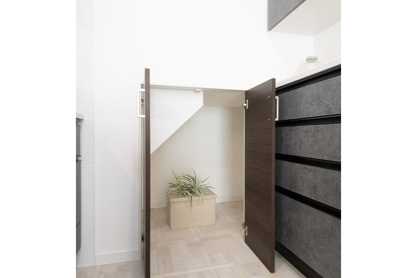 施工例ギャラリー トップ 施工例ギャラリー 白に映える大人ナチュラルな家 白に映える大人ナチュラルな家 半田市 S様邸 優しさと気品の広がる住まい 階段下収納 造作棚の収納スペース 玄関収納 一覧へ戻る