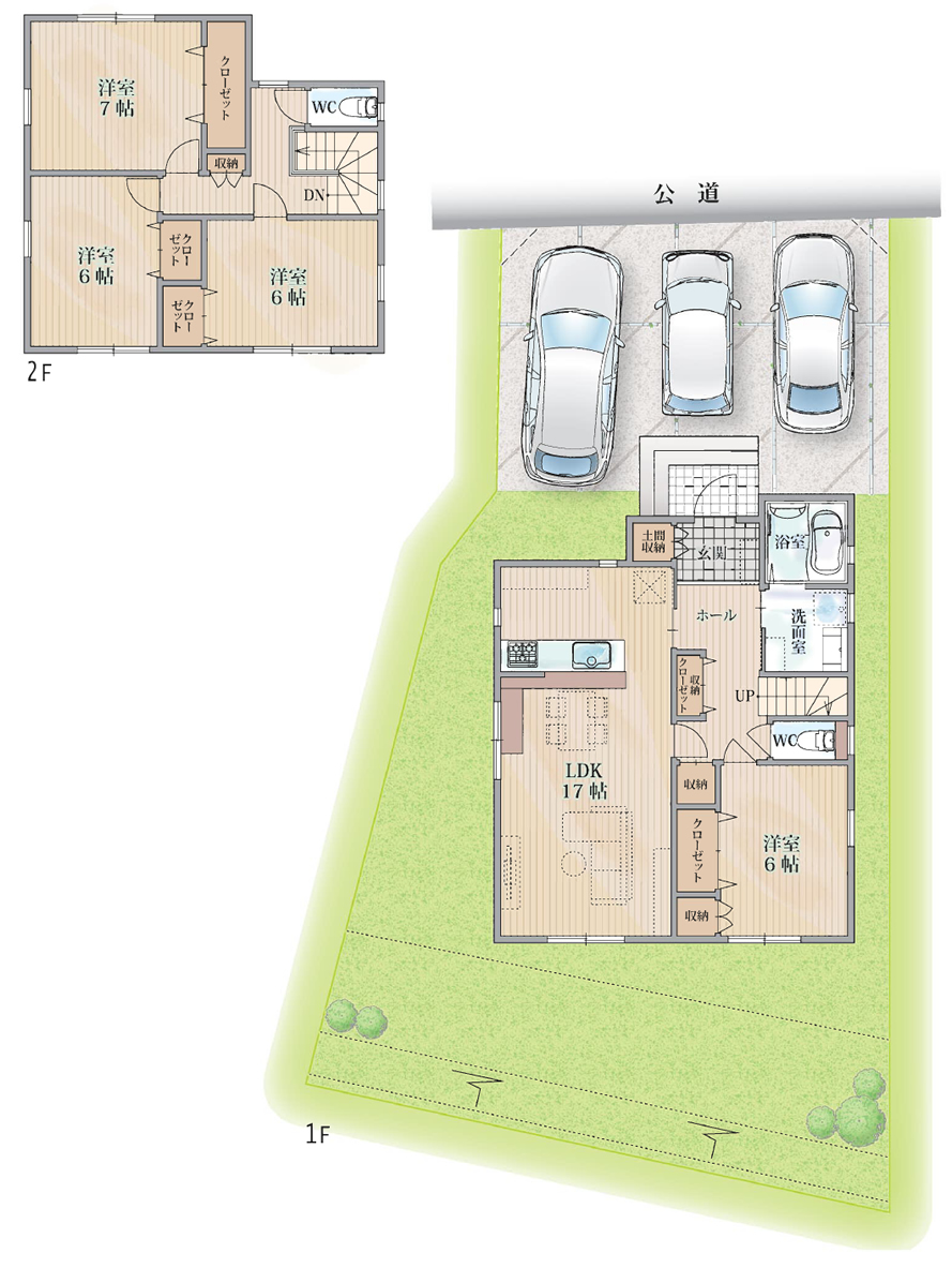 物件補足 | 築年月 新築 駐車場 3台 現況 更地 引渡 完成後 |